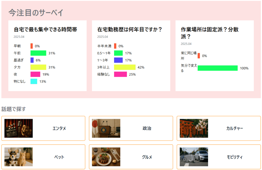 1:今注目のサーベイもしくは話題で探すからカテゴリを選択します。